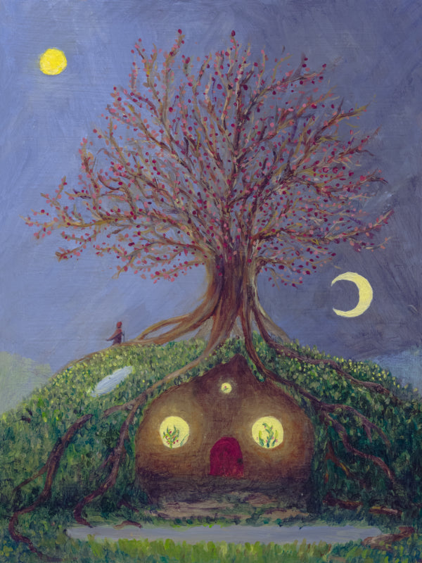 The panel is a gallery-panel, ready-to-hang with a sawtooth and soft feet for the corners. It's about 1.5" deep, with gold painted sides.